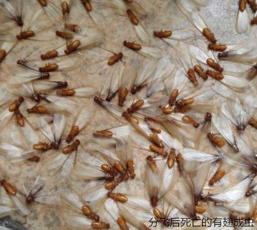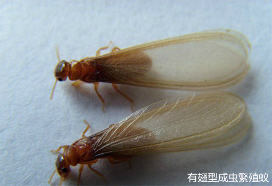 或有翅型:體軀骨化,黃、褐或黑色,有兩對(duì)發(fā)達(dá)的翅。每年4-6月是其分飛高峰期,特別是在春夏雨后悶熱時(shí),大量長翅繁殖蟻從蟻巢中飛出,在離巢不遠(yuǎn)處的建筑物附近低飛,飛行時(shí)間很短,這種現(xiàn)象稱為婚飛或群飛(分群)。群蟻在低空飛舞,好像在開舞會(huì),各自毫無拘束地自由選擇對(duì)象。"情投意合者"飛落地面,各自脫掉翅膀,雌雄成雙追逐,通常為雌前雄后,完成"婚配"大事。配對(duì)后的雌雄成蟲經(jīng)一段時(shí)間后,便開始尋找合適場(chǎng)所,建筑新巢"定居"。入穴后,雄蟲常用口器舔舐雌蟲的腹部,有時(shí)雌雄蟲彼此舔舐,然后產(chǎn)卵,繁殖后代,另立新的群體。這對(duì)"新婚"的雌雄蟻,就是未來新群體的母蟻和父蟻,也就是新群體中的蟻后和蟻王。大多情況下,這對(duì)伴侶終身過著"一夫一妻制"的文明社會(huì)生活。但不是婚飛中的所有個(gè)體都能成雙建立新群,當(dāng)它們大量飛出時(shí),常被各種鳥類、捕食性昆蟲或其他動(dòng)物吃掉,往往只有其中的少數(shù)能夠幸存下來,但盡管是少數(shù),也足以維持其種族繁衍,并造成對(duì)木質(zhì)建筑物的危害的了,王后躺在王室中可是專門"生育"的,到一定時(shí)期又有成蟲出飛建立新的群體。